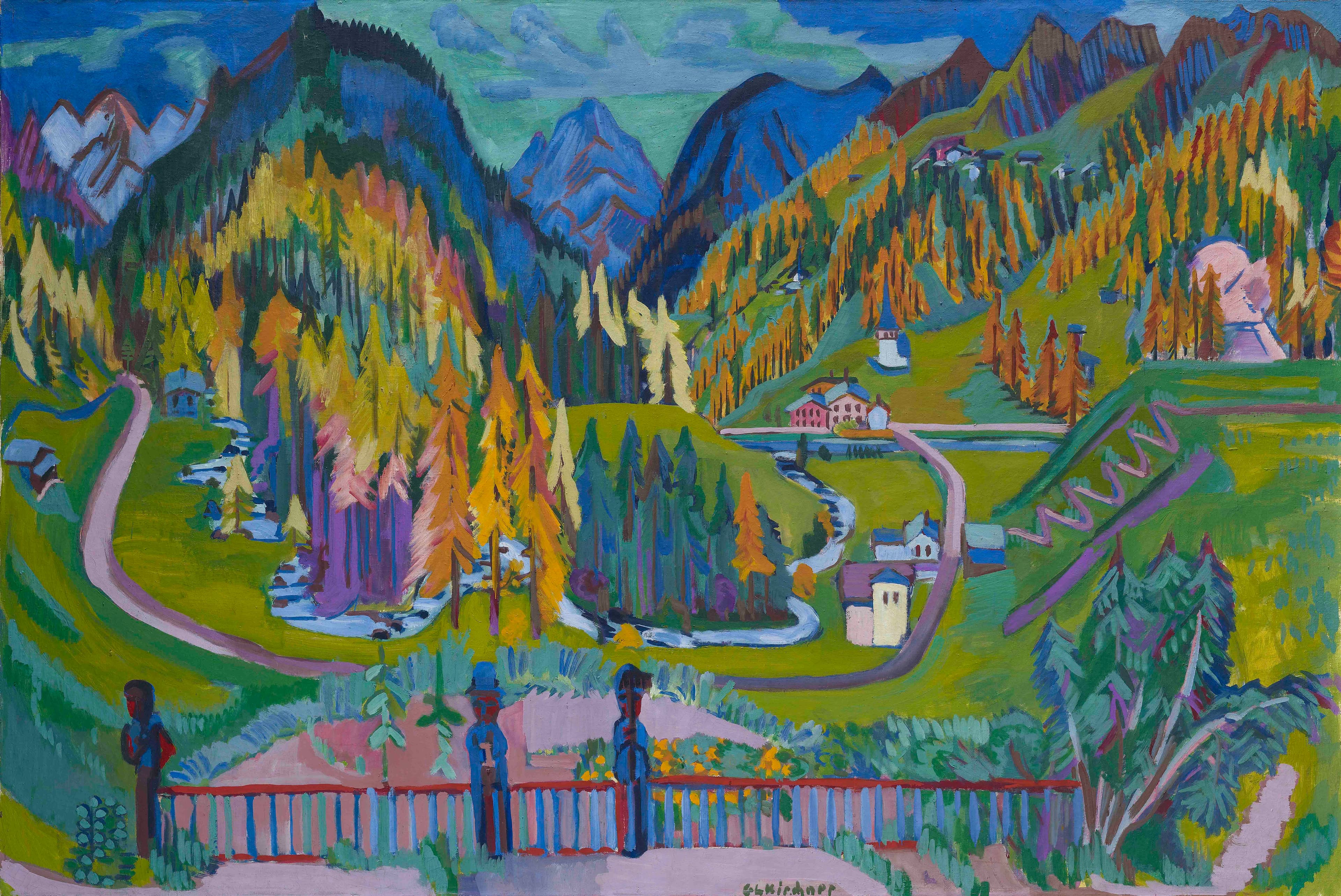 | Abb.: Ernst Ludwig Kirchner, Sertigtal im Herbst, 1925/26, Öl auf Leinwand (im Originalrahmen), 136 x 200 cm, Kirchner Museum Davos, Schenkung Erbengemeinschaft Amstad 2000 |