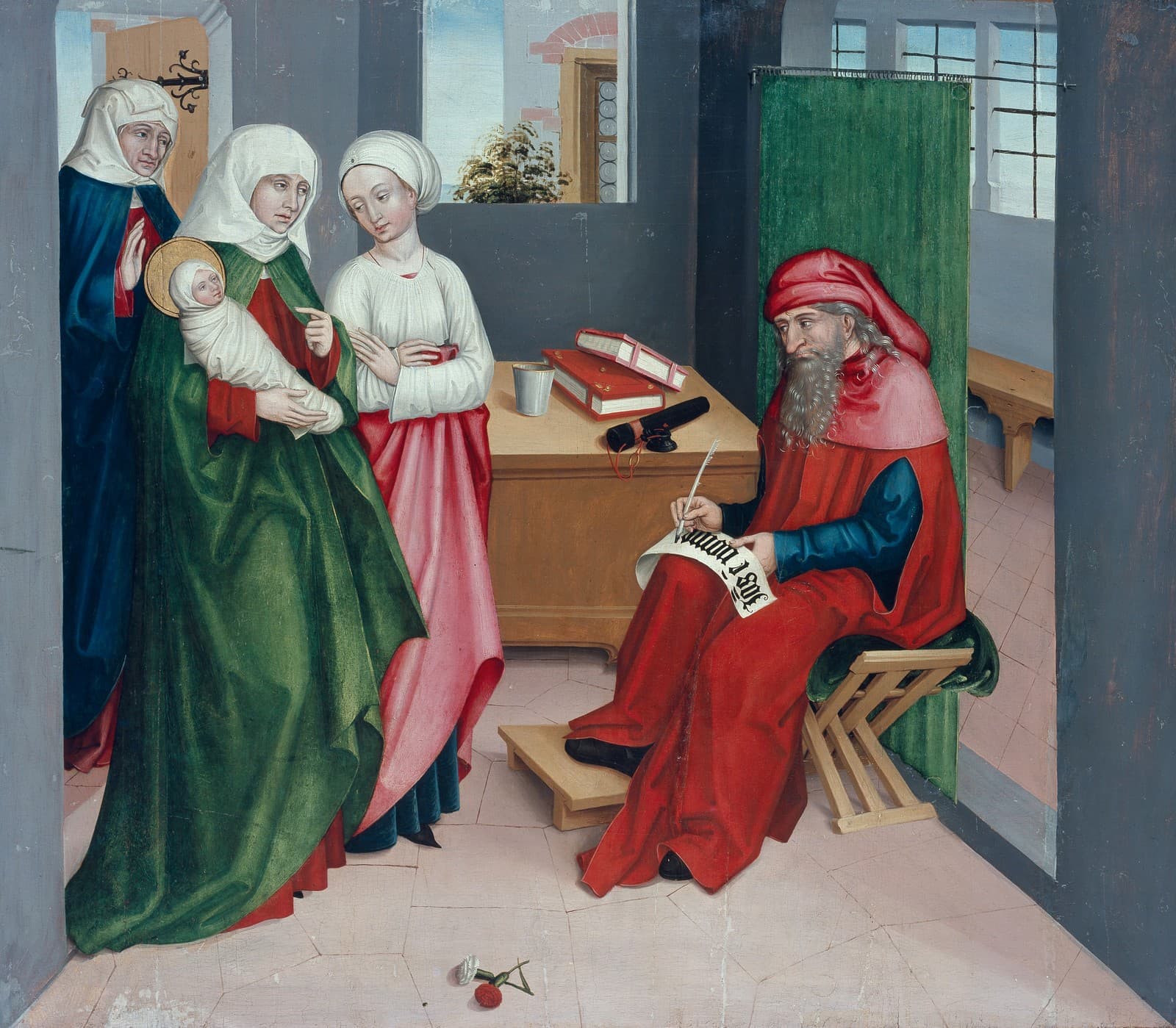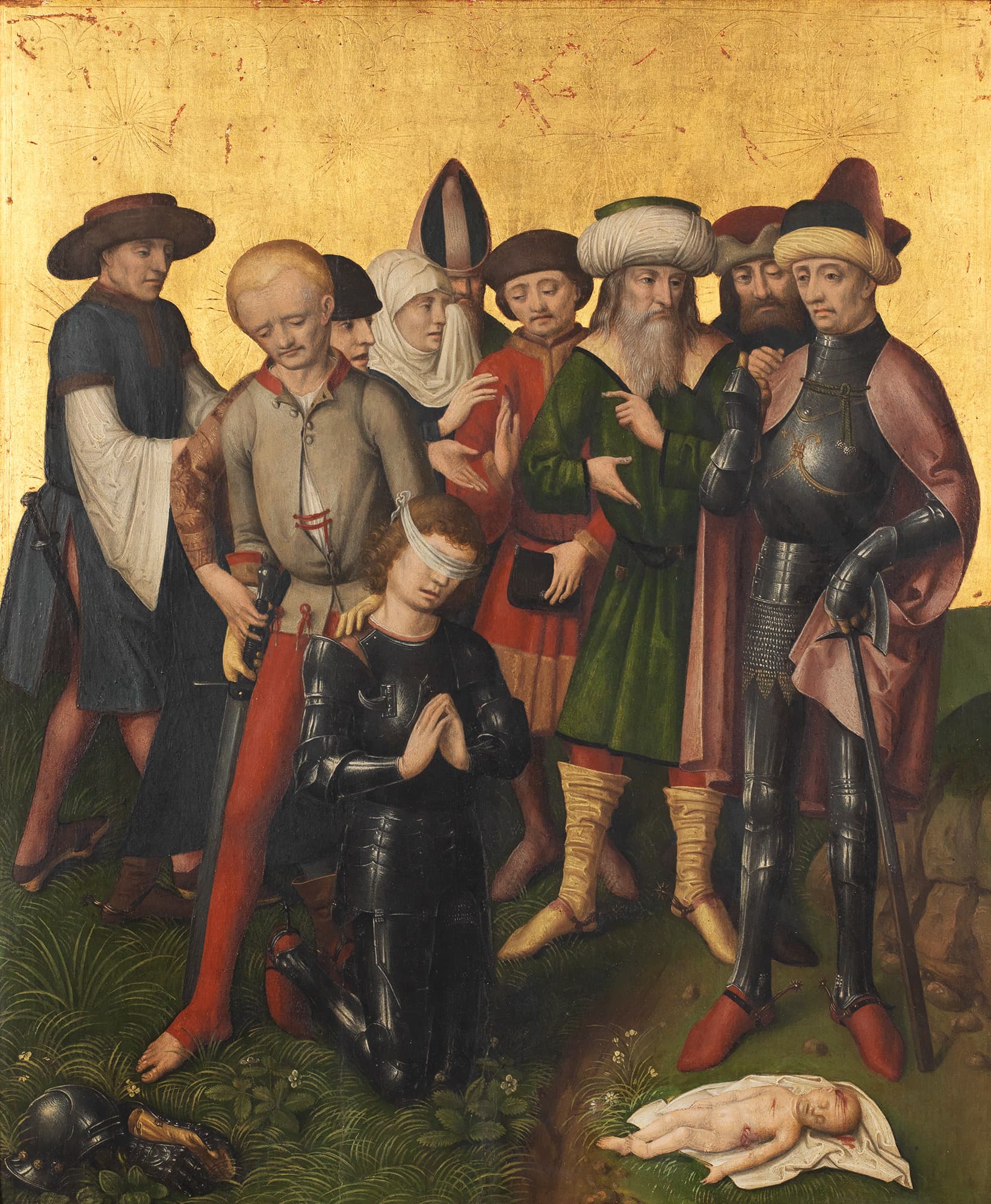 Im Zuge der Ausstellungsvorbereitung konnten drei Altartafeln der Nelkenmeister und vier Tafeln eines Gerechtigkeitszyklus mit der neusten Infrarotreflektografie-Technik untersucht werden. Dabei durchdringt die Infrarotstrahlung (nahes Infrarot) die Malschicht und wird von der hellen Grundierung reflektiert. So kann ein für uns sichtbares Bild der Unterzeichnung generiert werden. Der Blick unter die Malschicht ist eine wichtige Grundlage für die Erforschung des Werkprozesses und des Erhaltungszustands – und kann wertvolle Hinweise für die Zuschreibung liefern.